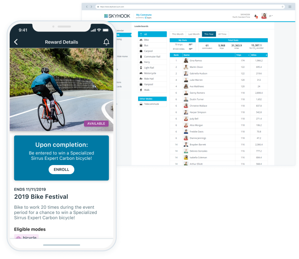 - Impactful employee engagement: Gamification, ride matching, and rewards